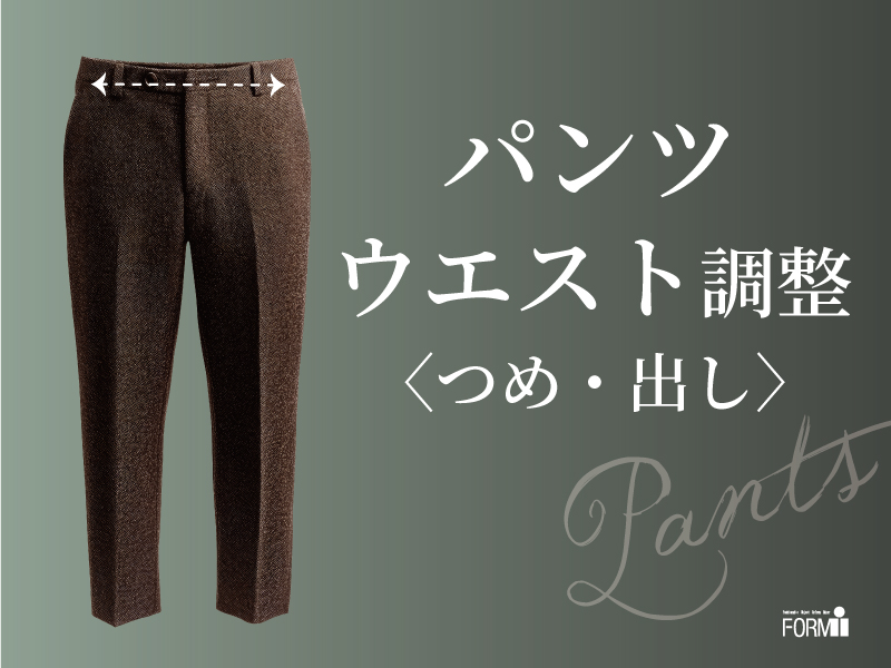 スラックスは縫い代が比較的残っていることが多く、ウエストを出せる可能性も高いので、座り仕事などでスーツを着用される方にオススメです。(シルエットを崩さずに、ウエスト部分に余裕を作れます。ウエストが大きい場合は小さくすることも可能)