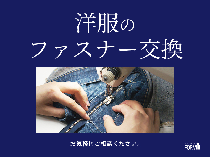 パンツの前ファスナーや、スカート・ワンピース・ドレスのファスナー取替なら当店にお任せください!