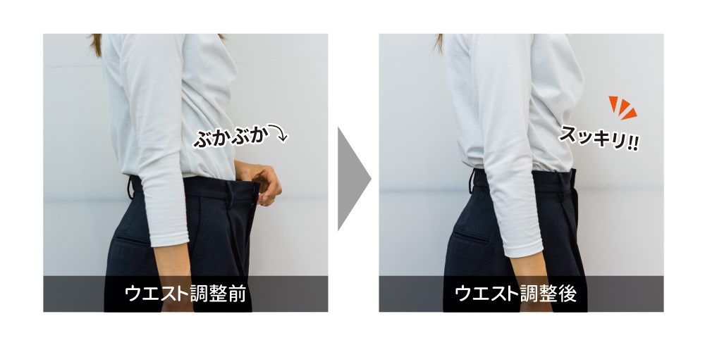 体型の変化でウエストがきつくなったスカートも、お直し方法などご提案させていただきます。商品をお持ちになりスタッフまでお気軽にご相談ください。(※ウエスト出しの場合、元の縫い目をほどいて広げるため、素材によっては出し跡が残る場合もあります。ご了承ください。)