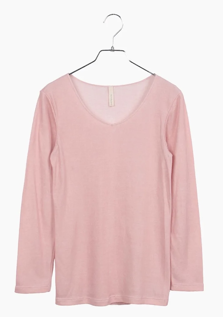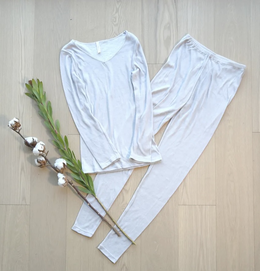 オーガニックコットンとシルクの2層で優しくからだを包み込むダブルフェイス素材のインナー。