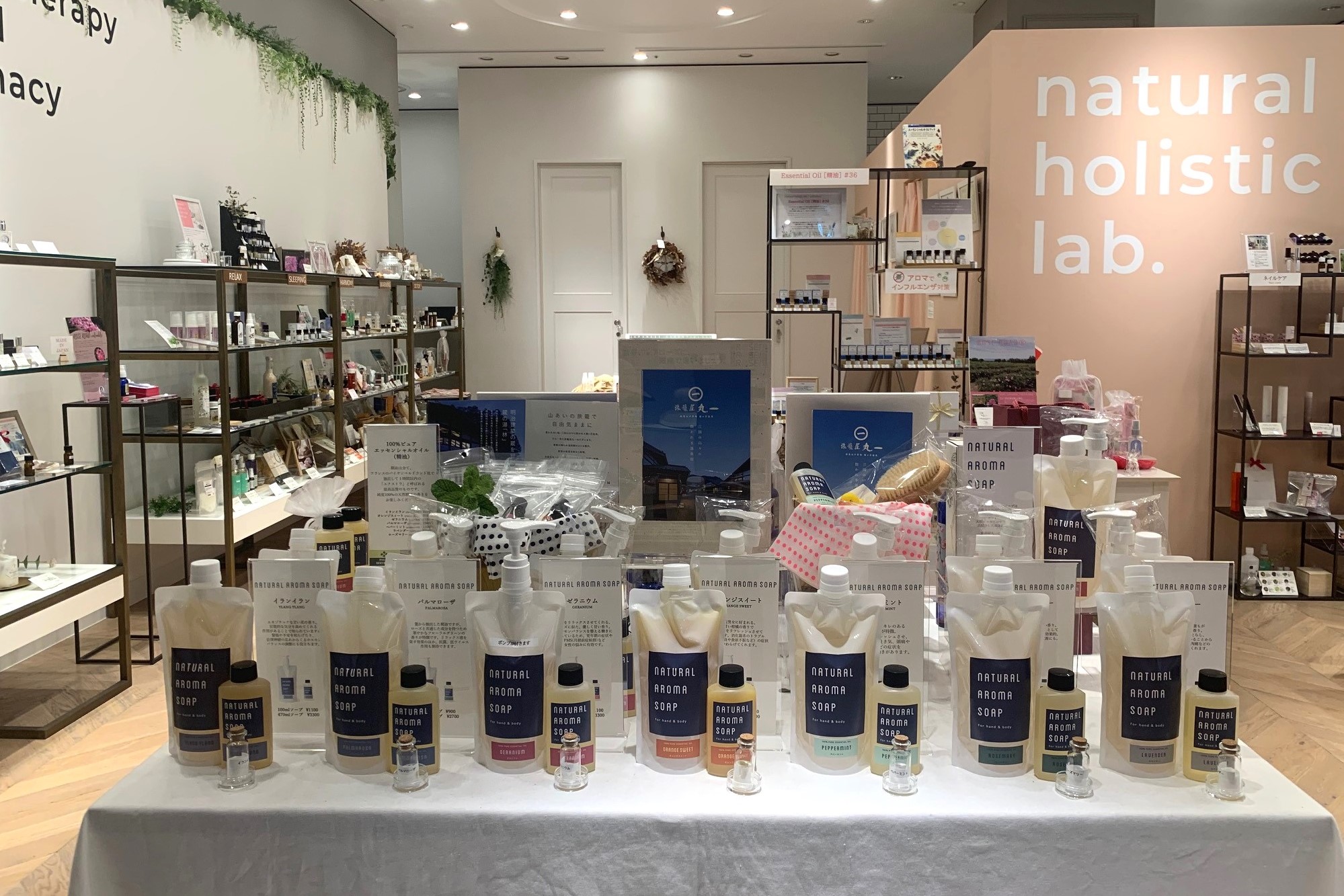 ボディソープのほかにエッセンシャルオイルも取り揃えておりますのでぜひ店頭で香りをお試しください。
