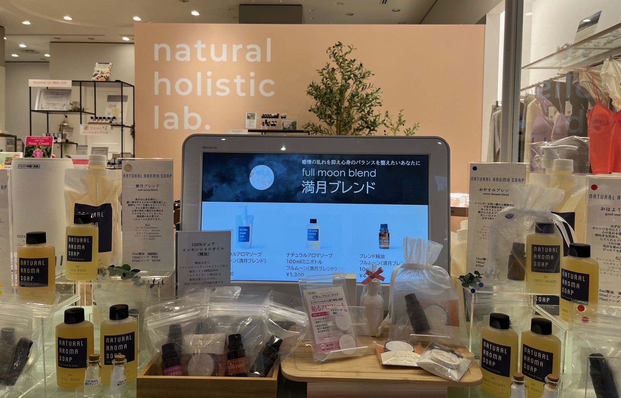商品はブレンドオイル(精油)とボディソープを取り揃えております。