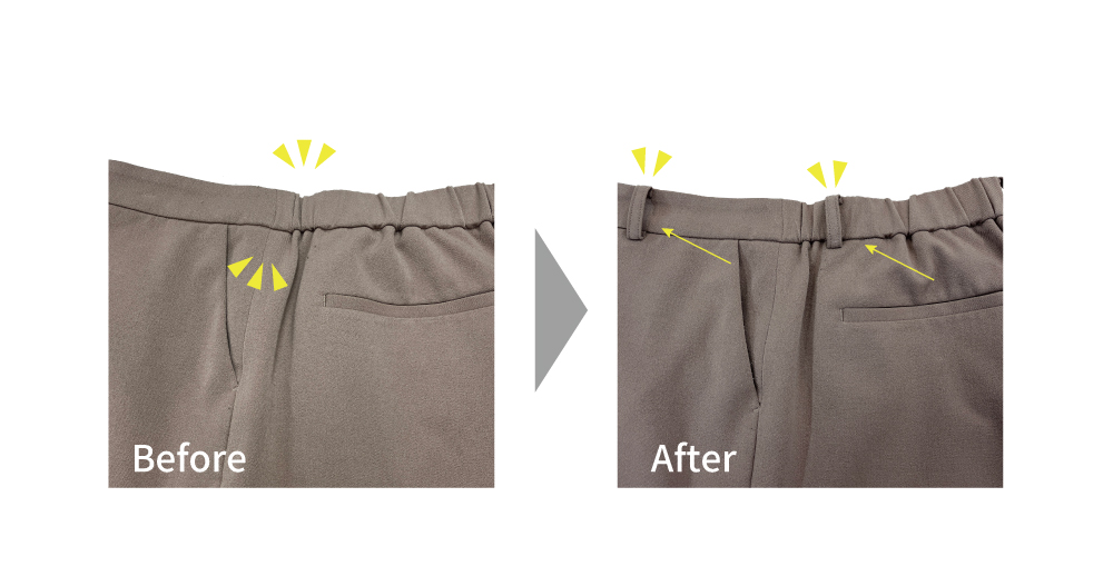 ↓↓その他、お手持ちのパンツにベルトループがついていない場合も、新規で取り付けをすることができますので、お気軽にご相談ください。