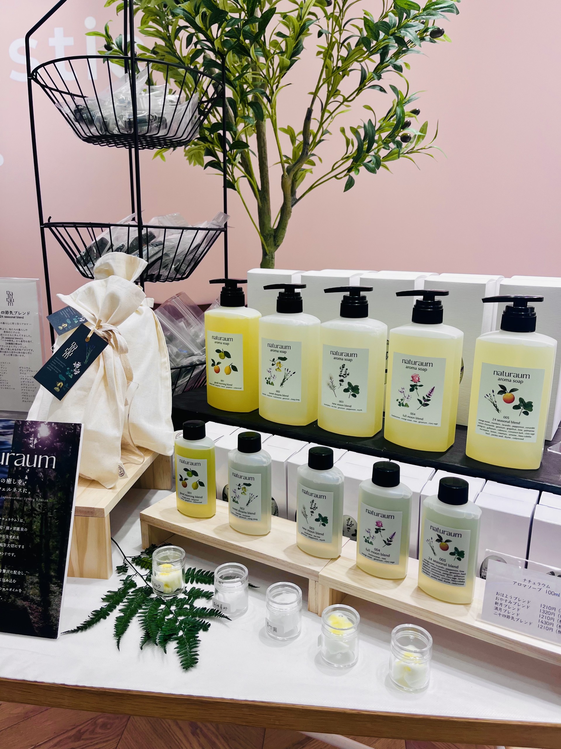 ボディソープのほかにエッセンシャルオイルも取り揃えておりますのでぜひ店頭で香りをお試しください。
