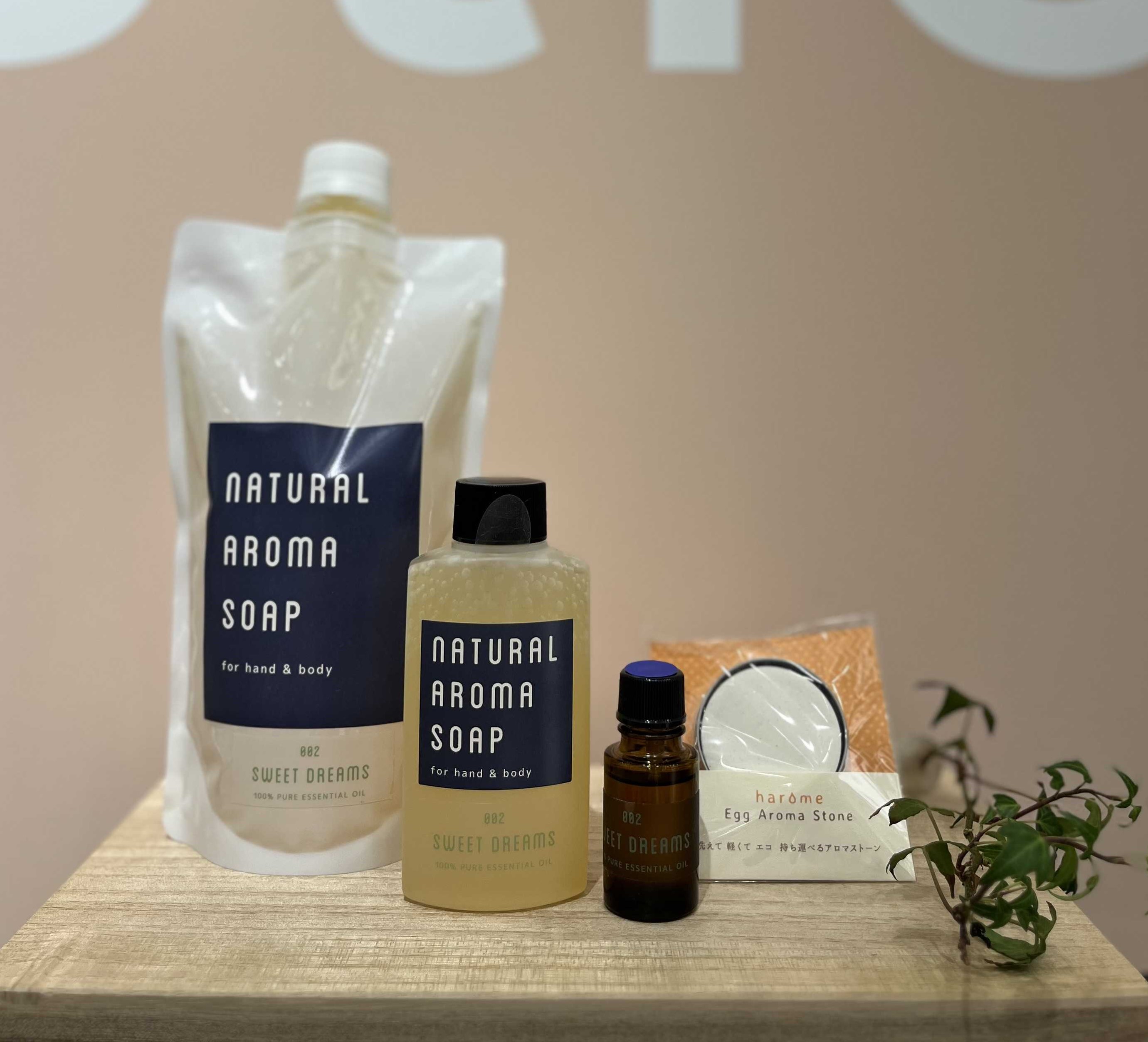 ボディソープのほかにエッセンシャルオイルも取り揃えておりますのでぜひ店頭で香りをお試しください。