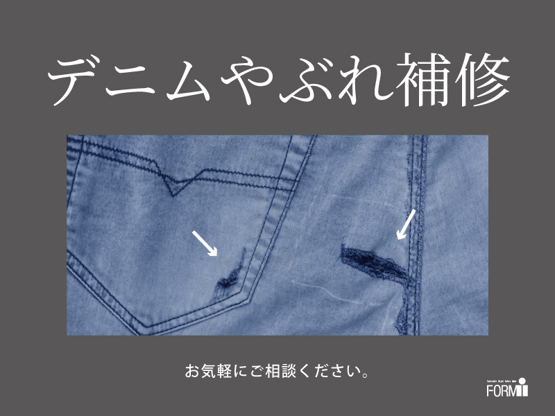 ヒップや内股の生地が薄くなって、擦り切れて穴があいたり破れてしまうことはよくあります…お直しすることができますので、お気軽にご相談ください。