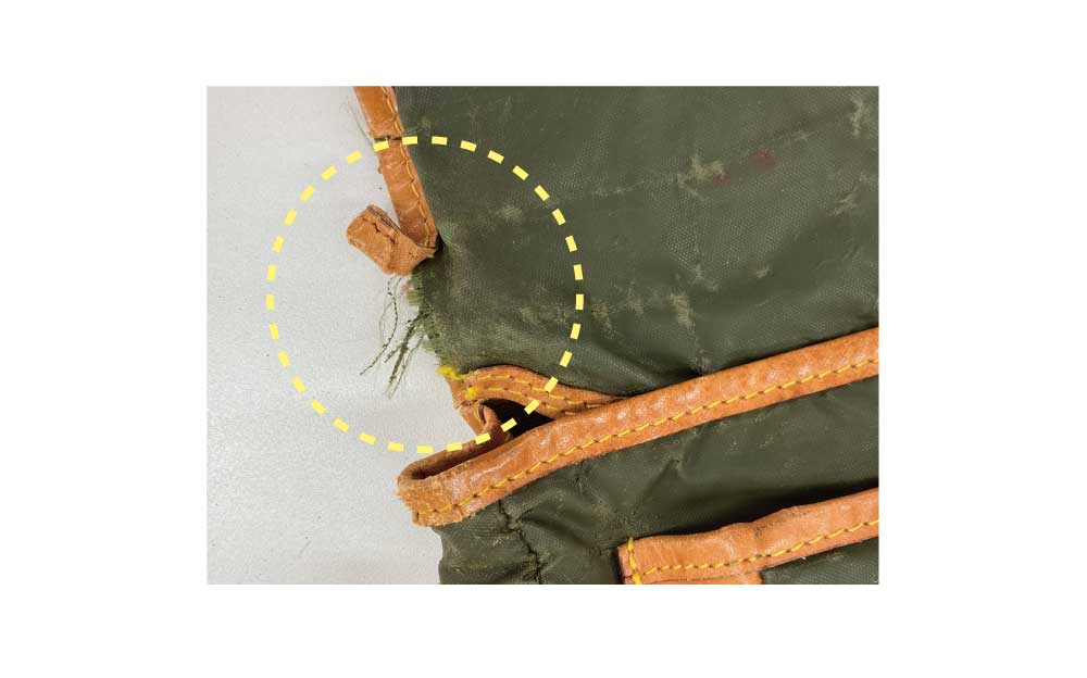 「玉芯(パイピングの中の芯材)」が飛び出してしまったら、早めにお直しへお持ちください。