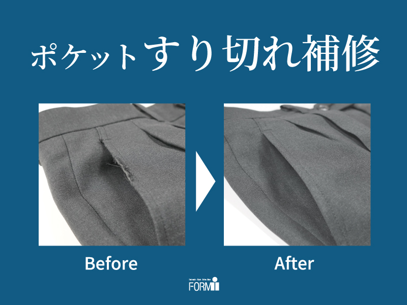 パンツのポケット口が擦り切れても、お直しできます!