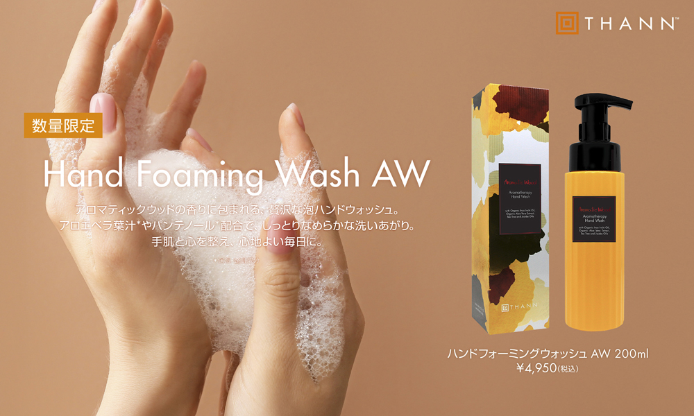 NEW 更新日:2025.11.21 THANN 03-6264-5205 数量限定 Hand Foaming Wash AW 実施日時 2025/11/07(金)~ 数量限定 Hand Foaming Wash AW 2025.11.07(Fri)より発売! 天然精油 オレンジ・ナツメグ・タンジェリン サンダルウッドの心地よく洗練された贅沢な香りに 包まれる贅沢なハンドウォッシュ アロエベラ葉汁*パンテノール配合* しっとりなめらかな洗いあがり 手肌と心を整え 心地よい毎日に *保湿整肌成分 ハンドフォーミングウォッシュAW200ml ¥4,950(税込) ぜひ店頭にて香りをお試しくださいませ ご来店を心よりお待ちしております 公式HP X インスタ X この店舗のショップニュース Monthly Present Christmas Collaboration Gift 2025 限定商品 Autumn Flora Essential Oil 数量限定 Aroma Sachet