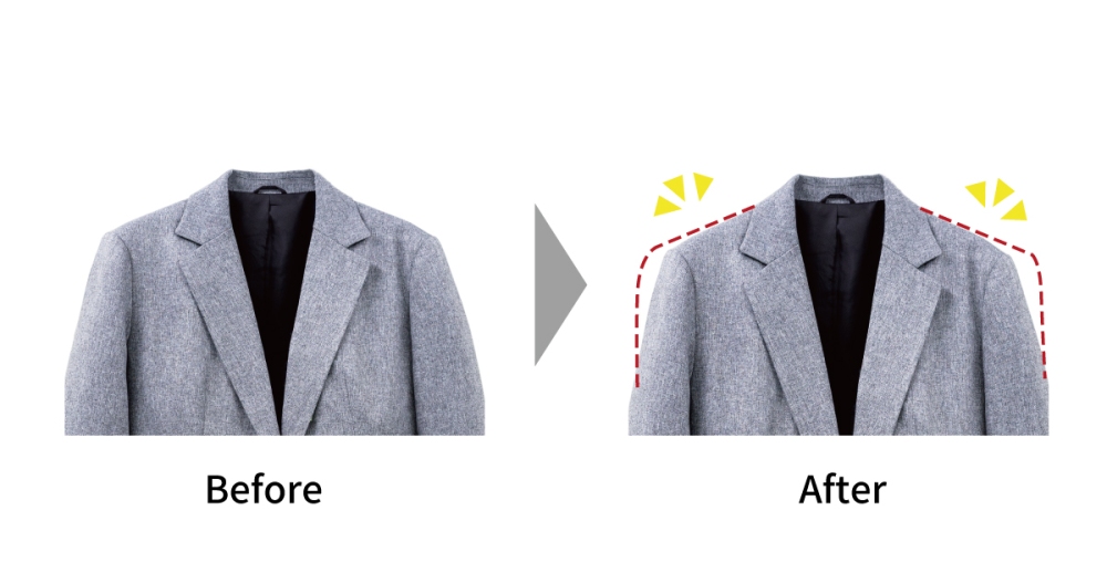 ↑↑ 体型が変わってサイズが合わなくなったジャケットも肩幅を調整することで、スッキリ✨