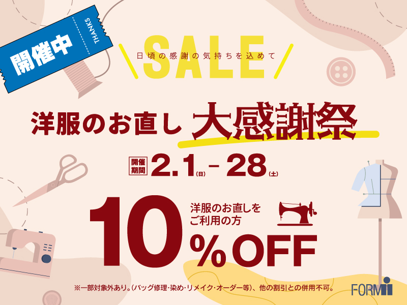 本日、2月1日(日)より、『洋服のお直し』 大感謝祭がスタート!!