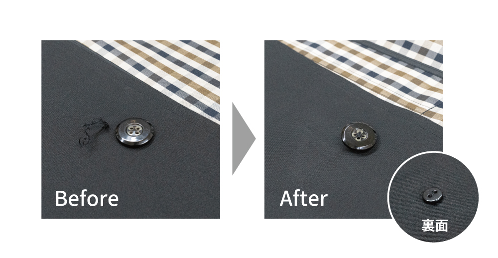 館内でお買い上げのお洋服はもちろん、他店で購入された商品や、ネット通販でご購入されたお洋服のボタン付けも承ります。
