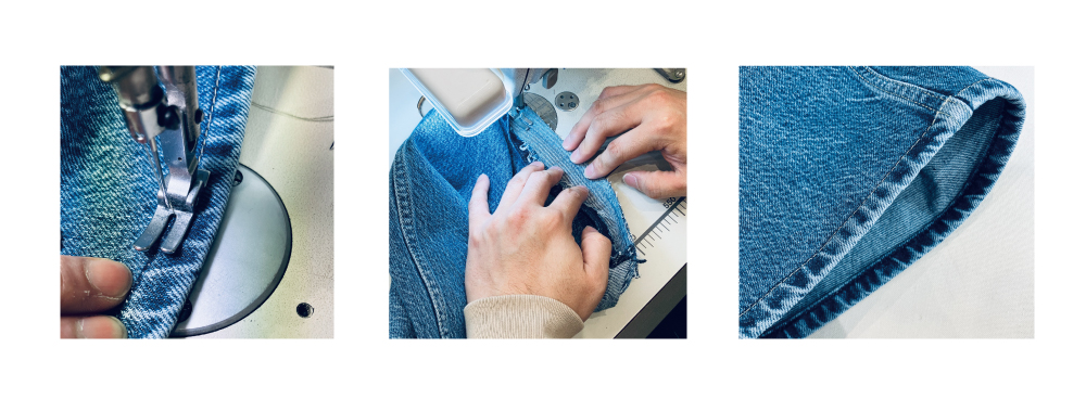 作業時間がかかる為、通常の裾上げ料金より高くなりますが、お気に入りのジーンズなどは こちらの方法でのお直しをお薦めします