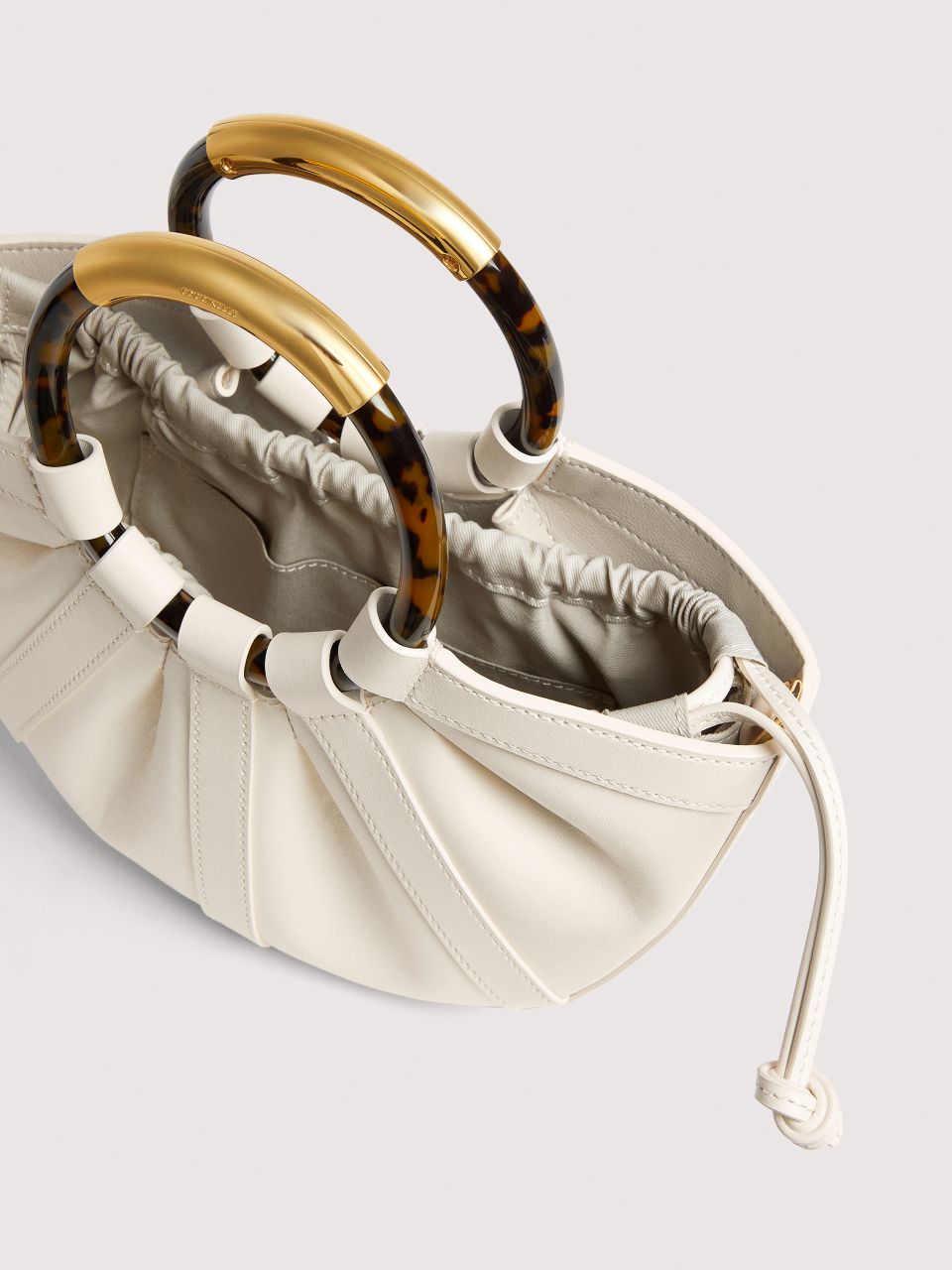 滑らかなドレープレザーで作られたライン、べっ甲調の丸いハンドルの装飾はしなやかな力強さを秘めた現代の女性にぴったり。