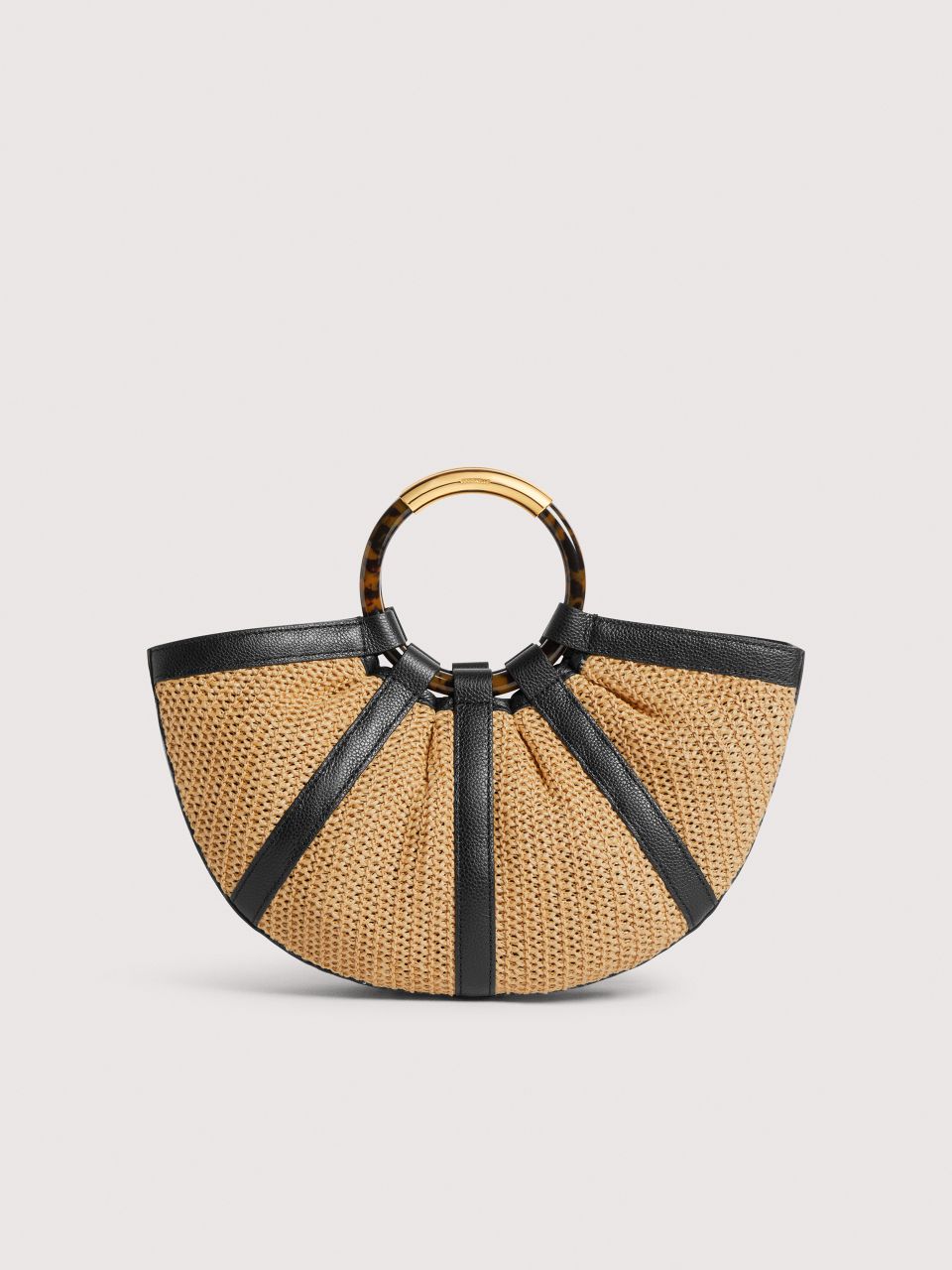 レザー素材以外に、夏のトレンド、ストローとのミックス素材も展開。